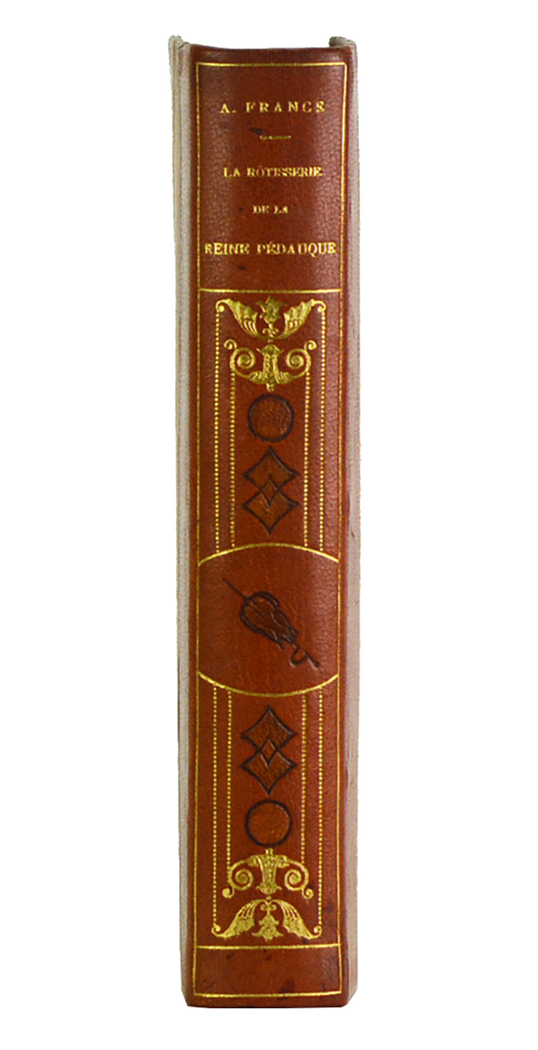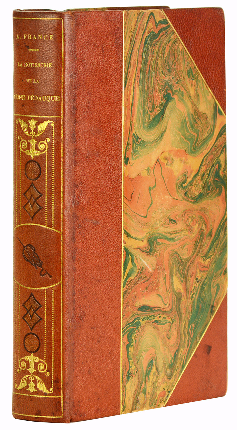 Paris, Calmann-Lévy, s.d. (vers 1910) ; in-12, 388 pp., demi-chagrin poli brique, dos lisse orné de décors frappés à froid et à chaud (dont une volaille sur broche), couvertures et dos conservés, tête dorée (reliure signée Flammarion-Vaillant ; minimes traces d'usage, petites taches sur le cuir du plat supérieur).